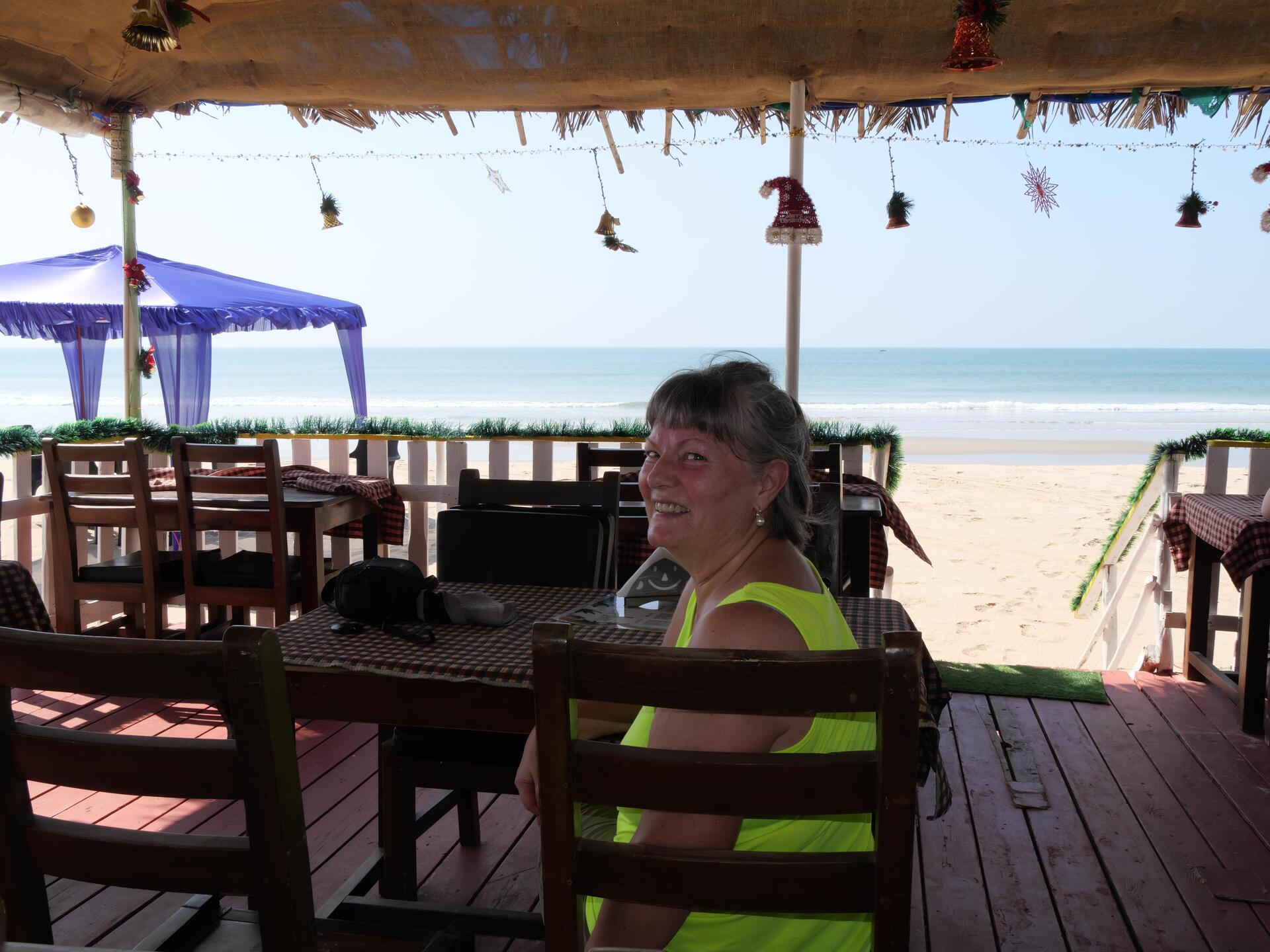 Im Internet informierten wir uns über den Zeitraum während dessen das Wasser für unseren ausgedehnten Strandspaziergang soweit zurückgegangen war, dass wir auf dem feuchten und damit festen Sand bequem gehen konnten. Die Gemeinden des Küstenbereichs finanzieren sog. Lifesaver, die von ihren erhöhten Sitzgestellen aus darüber wachen, dass die meist des Schwimmens nicht mächtigen Inder nicht zu weit ins Wasser gehen. Einige Lifesaver kennen wir bereits von unseren vorangegangenen Aufenthalten und auch sie freuen sich, sich mit uns unterhalten zu können, wenn wir ihnen während unserer Strandspaziergänge begegnen. Anders als in Nordgoa gibt es in Südgoa, wo auch Cansaulim und der Arossim Beach liegt, nur wenige Resorts. Deren Gäste halten sich anscheinend vorwiegend in den Resorts und an deren Pools auf, denn am Strand lassen die sich nur selten blicken. Lediglich während der Wochenenden sieht man einige Tagestouristen am Strand. Im Abstand von etlichen hundert Metern locken Strandbars mit Getränken und Speisen. Manchmal nutzen wir diese Gelegenheiten für einen würzigen Masala Chai oder eine erfrischende Salty Lime Soda.