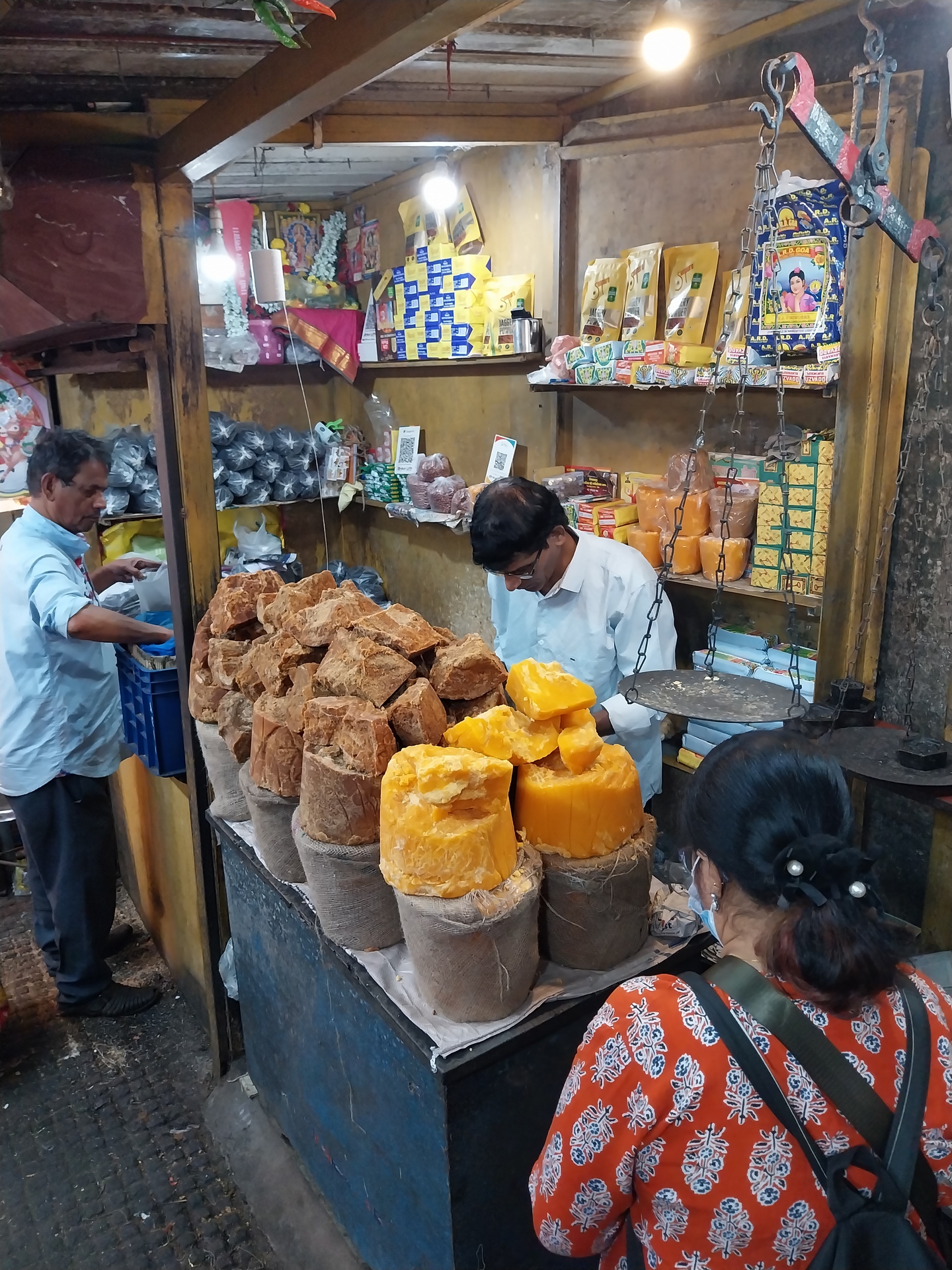Unraffinierter Palmzucker, Jaggery wird im New Market in Margao angeboten Wo?Nach Rechtsklick