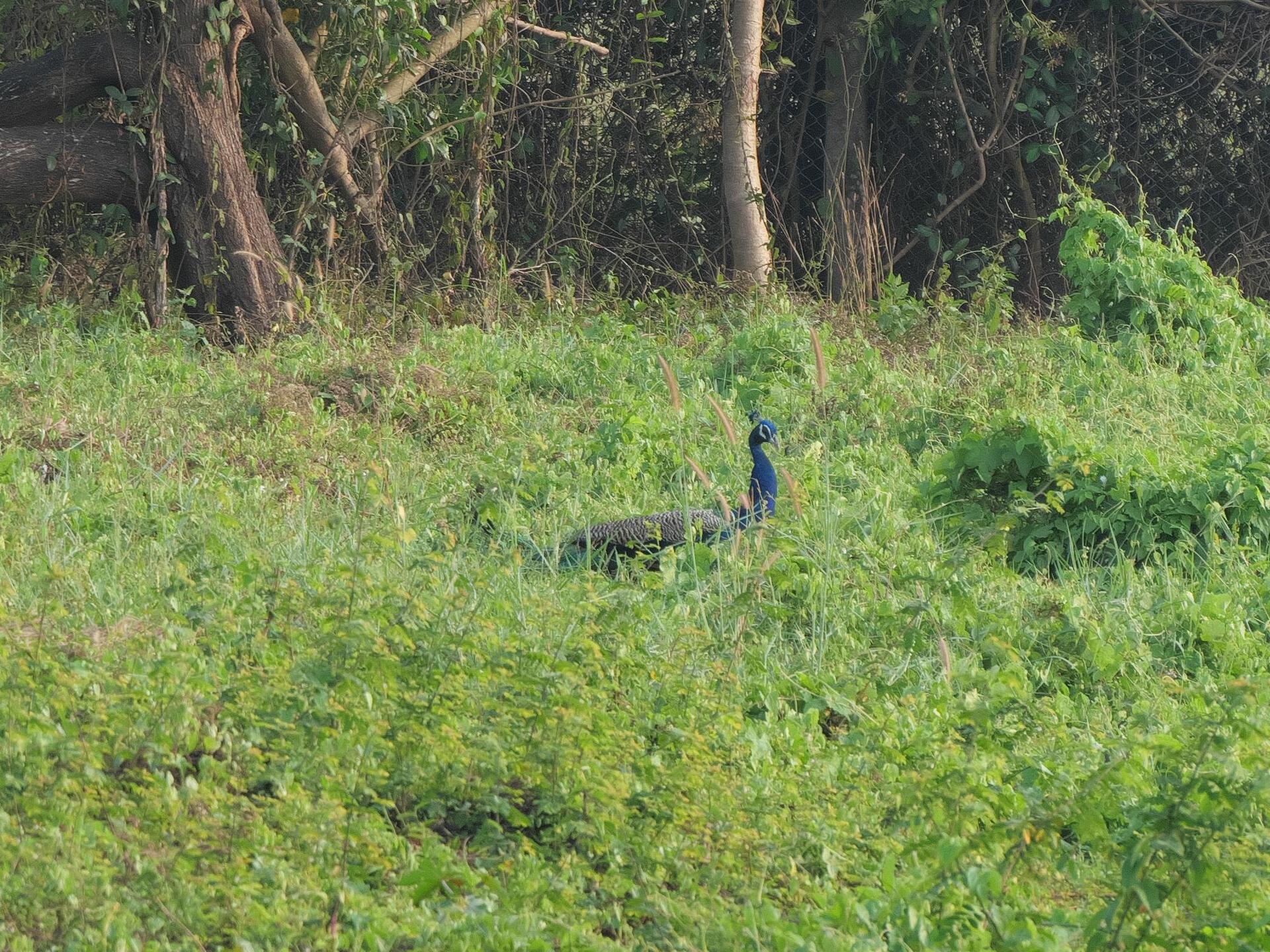 Ein Pfau in der Wiese neben dem Weg zum Strand Wo?Nach Rechtsklick