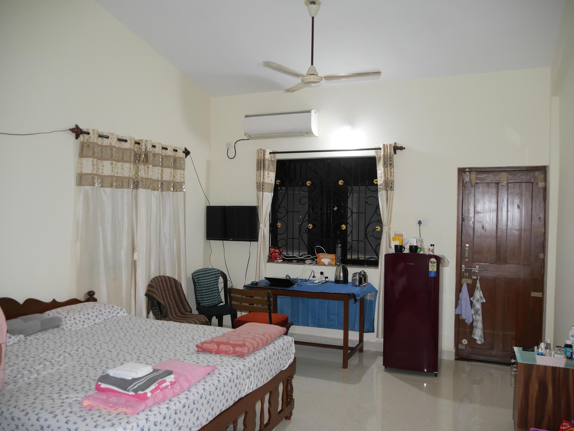 Während unseres vorletzten Aufenthalts ließ unser Gastgeber für uns einen Internetanschluss über Glasfaser verlegen, über den wir die diversen Internetportale nutzen und Zeitungen (NZZ, Welt, …) herunterladen konnten. Um 19:00 Uhr wurde das Abendessen serviert, das wir bereits im Anschluss an das Frühstück bestellt hatten. Obwohl die Tage nicht besonders aufregend verliefen, waren wir müde genug, um gegen 22:00 Uhr schlafen zu gehen. Diese Routine wurde manchmal unterbrochen durch Besuche der nächstgelegenen größere Stadt, Margao. An solchen Tagen nahmen wir den Zug um 7:50 Uhr von Cansaulim nach Margao (18 Minuten, 10 Rupien pro Person entspricht 0,09 €). Dort nutzten wir die Gelegenheit, die südindischen Spezialitäten zu frühstücken, die wir in Cansaulim nicht bekamen. Margao hat darüber hinaus ein umfangreiches Angebot an Tees, Stoffen, Kleidung, Schuhen, Obst und im New Market gibt es alles andere. Nahmen wir ein Tuk-Tuk, um unabhängig vom Zugfahrplan zu sein, kostete uns die Rückfahrt etwa 5,50 €.