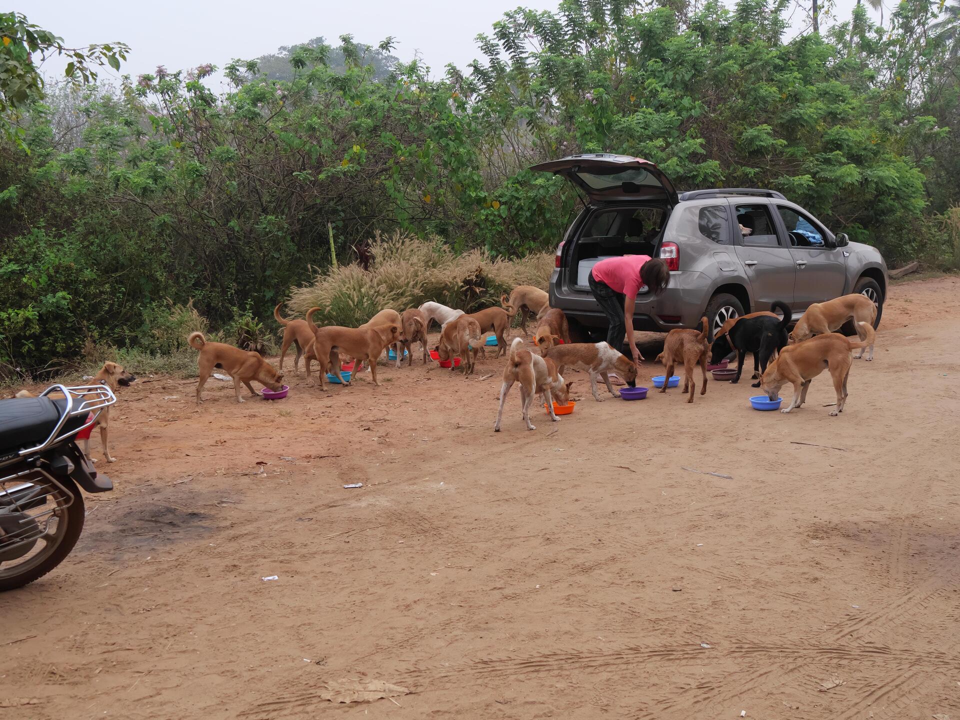 Auf dem Weg zum Strand fielen uns morgens regelmäßig zwei Frauen auf, die eine größere Gruppe Hunde fütterten. Anfangs dachten wir, das sei zu missbilligen, da dies die ohnehin bereits u. E. zu hohe Anzahl herrenloser Hunde weiter erhöhen würde. Irgendwann kamen wir schließlich doch ins Gespräch und es stellte sich heraus, dass genau das Gegenteil das Ziel der Beiden war. Sie stellen sicher, dass alle Hunde sterilisiert oder kastriert werden und sorgen z. B. durch regelmäßige Wurmkuren für deren Gesundheit.